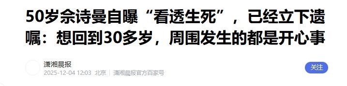 50岁佘诗曼无儿无女,至今未婚,人生才刚过一半,就已经看透一切,早早把遗嘱写好。