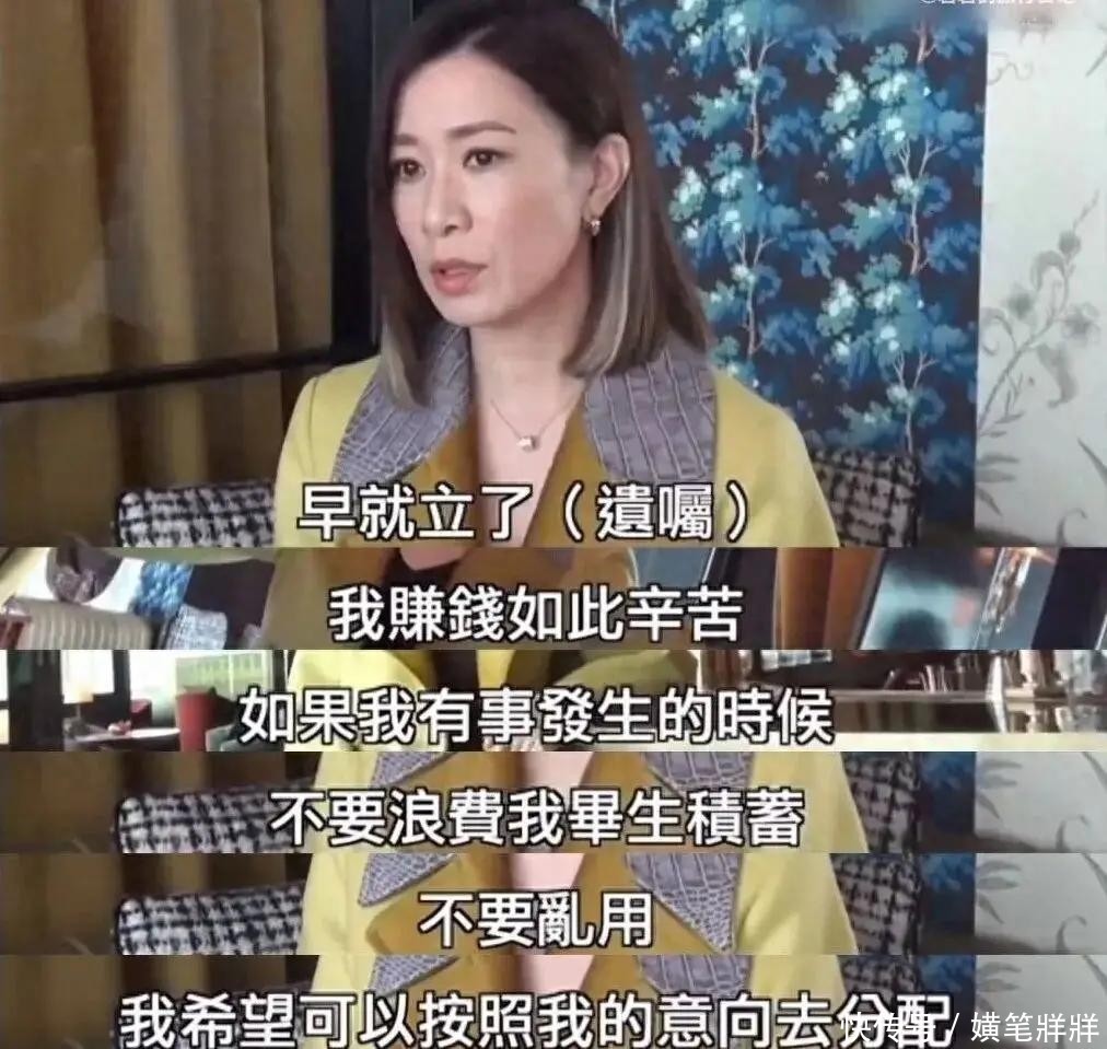 她表示遗嘱早就已经写好了,年轻时那么卖命的拍戏赚钱,很辛苦,提前写好遗嘱,也不会让一辈子打拼下来的心血白白浪费。